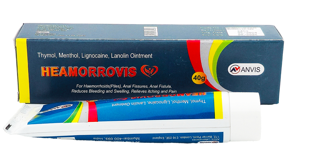 HEAMORROVIS 40g ointment combines Thymol, Menthol, Lignocaine, and Lanolin to relieve hemorrhoids, anal fissures, and fistula with pain and swelling reduction.